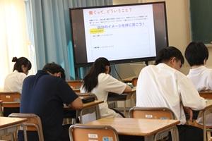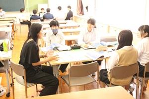 振り返りでは、「商学と経済学と経営学の違いが、よくわかった。」「興味があったので、音楽関係の専門学校の説明を聞いた。技術・業務内容・著作権等の各種資格・職場環境など、エンターテイメント業界についての現状を知ることができた。」「自分の将来についてしっかり考えていきたいと思った。早く1つに絞らず、まだ他の学校も見て、自分にとってより良い選択をしたい。」「就職希望だが、思ったより時間がないことがわかった。」「保育実習では、子供ひとりひとりに合わせて対応する事が、大変だと思った。」「オープンキャンパスに行くことが、やっぱり大切。」などとの感想が、あがりました。